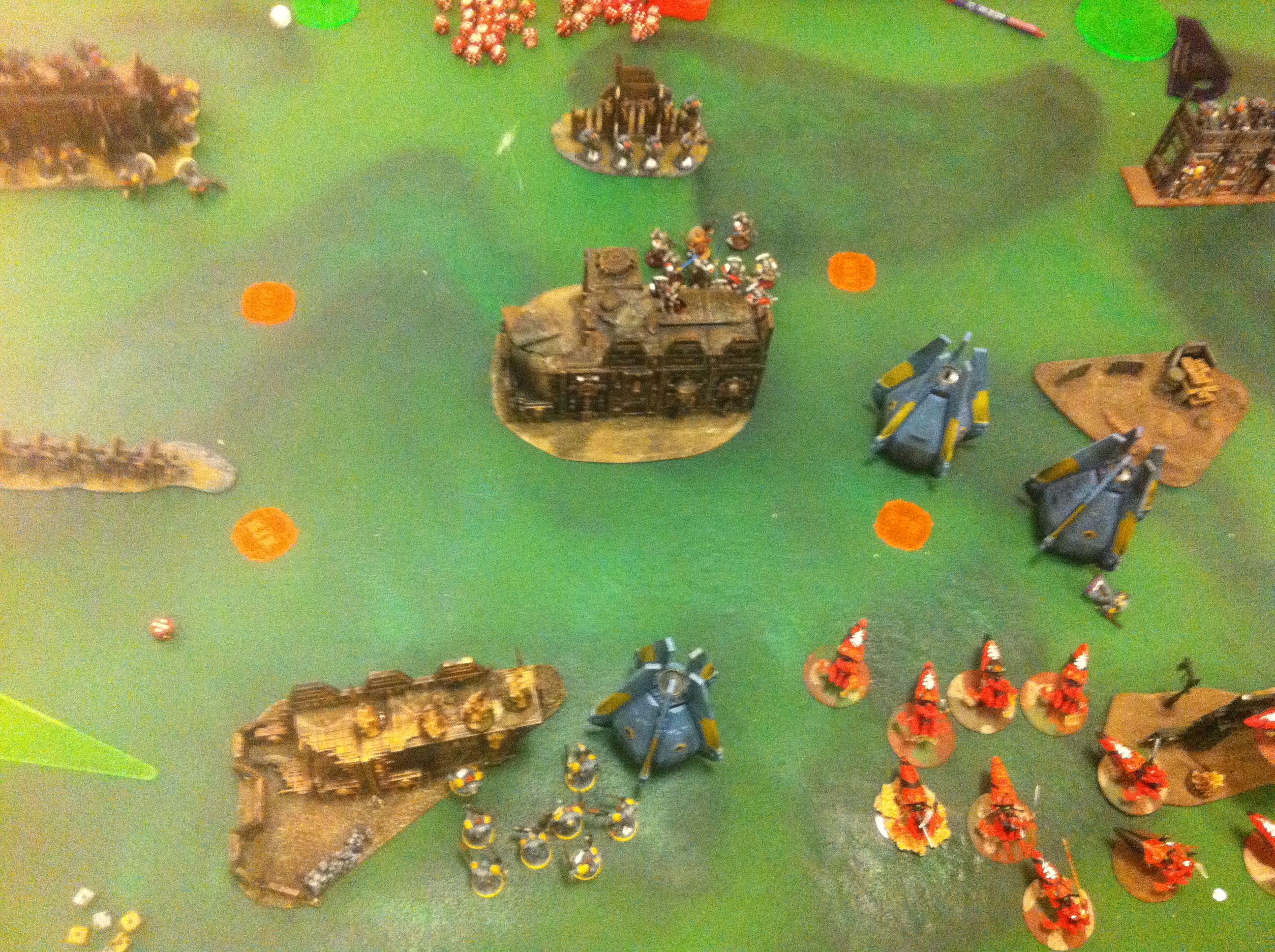 In turn three, I threw the council into the ghost ark and the two re-grouped squads and killed most of them and cut down the rest. Because our time was running out, I flat out the jetbikes onto the objectives. On his side of the turn the squad inside the ghost ark was surrounded and what was left advanced to try and contest objectives. The game ended there from time constraints and the result was P: 4/0, S: 5/0, and T: 9/0.