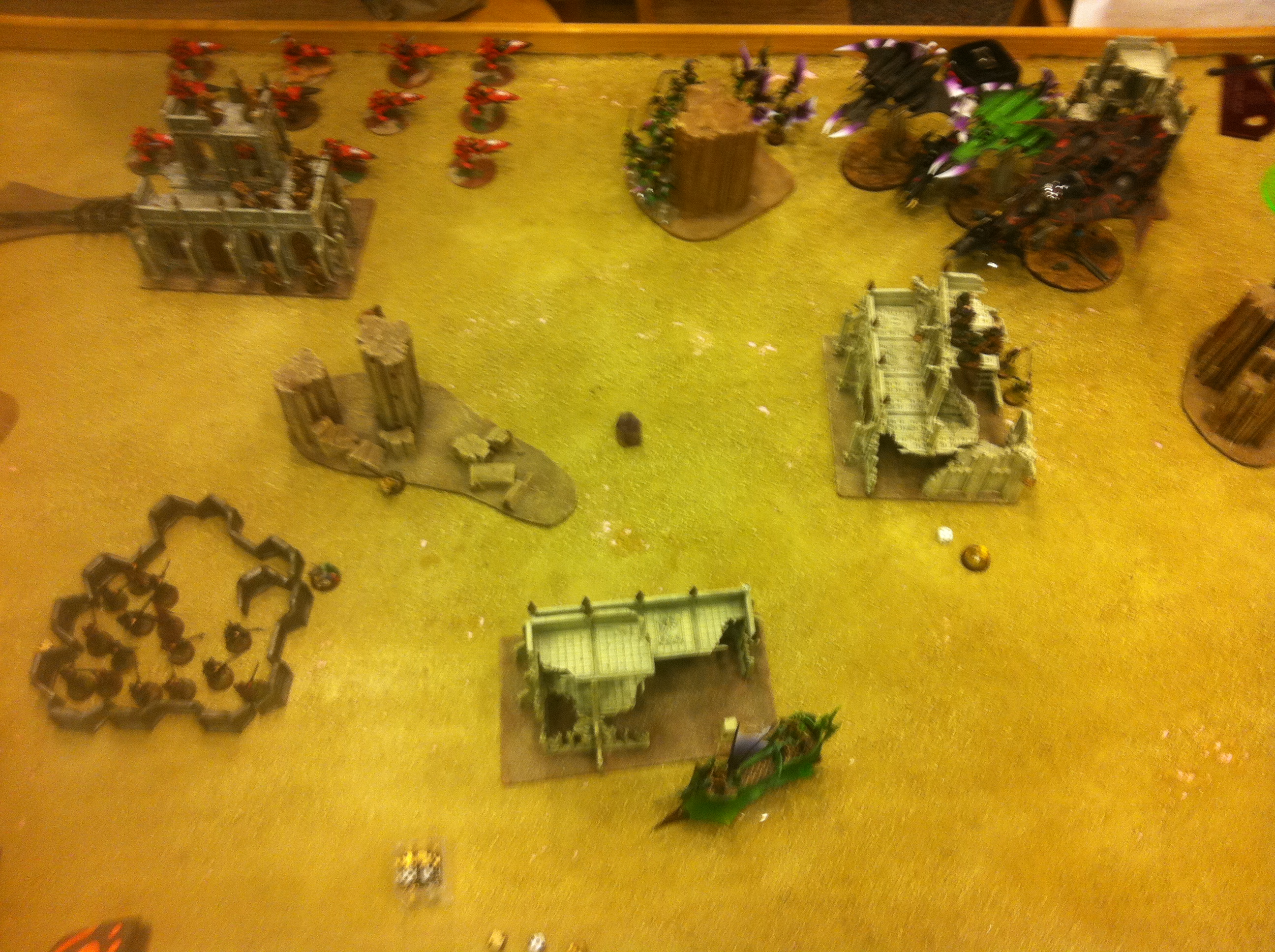 For my turn three, the council flat out over to the blob, and all of the snipers and Deldar dropped the assault marines. For his turn three the vendetta came in and the squad inside flamed the council and everything else shot at them.