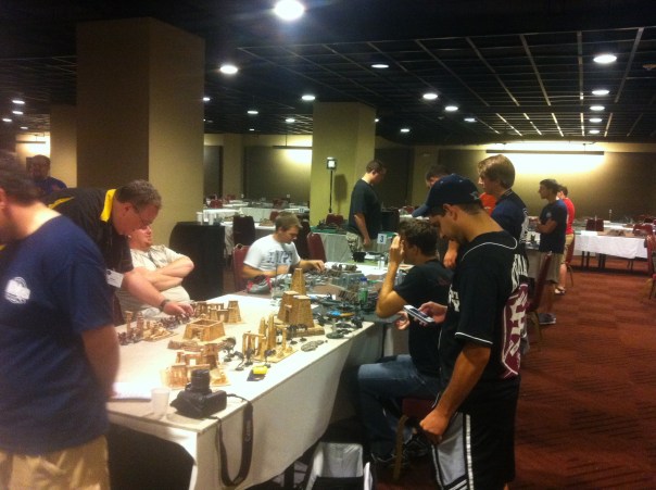 There were a bunch of vendors that came out. The War Store was there, Grex Airbrushes, I was lucky enough to get a conversation in with Rob from Spiky Bits, among others. There was a huge room setup with tables and terrain for 40k. Warmahordes had its own room, as did Warhammer Fantasy. All in all it was very well done and had a lot of work put in.