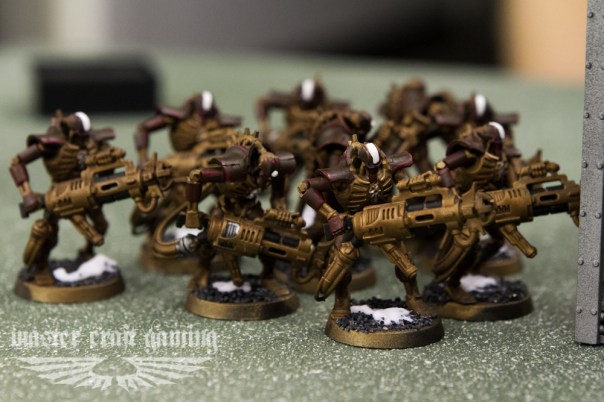 I’m not trying to say that anything in here is inherently unplayable, but I do want to point out that these were the worst models that I had painted for these two forces. Some of these are pretty funny and are very rarely used in the competitive scene. By suggestion I took tau/guard with as many lightly armored transports as possible because of how bad they got. I added in a squad of ogryns, and a penal legion squad as they are often the least used troops choice in the IG codex. I made sure that my Lord Commissar had no weapons of relative use, and was in his own dedicated transport. All in all I think that the best thing in the army was the aegis line, and I wouldn’t have taken it if I found my ethereal in time.