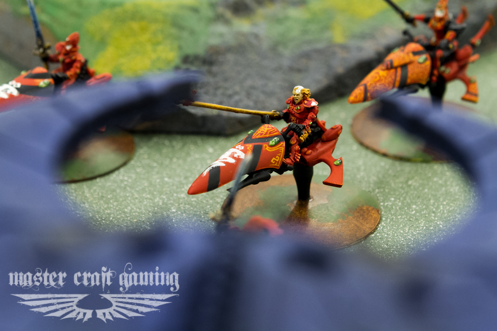 The last match I played against a fairly similar list. Walter brought Dark Eldar with Eldar allies. He included three fliers, harliquins, an autarch, some scorges, the baron w/ hellions, some trueblood venoms, and two squads of pathfinders. The mission was P: Objectives, S: Kill Points with a vanguard deployment.